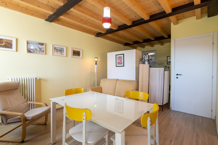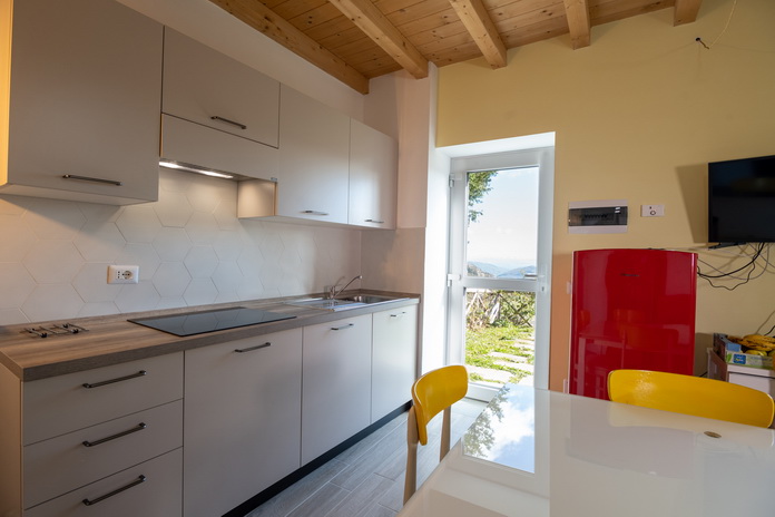 1.7 L’immagine esterna dell’abitazione è uguale a quella dell’intero borgo e cioè di una struttura storica in sasso a vista; l’immagine interna evidenzia un arredamento in parte nuovo (impianti elettrici e termosanitari, cucina Scavolini, dotazioni bagno, armadi) + oggetti di “modernariato” attentamente selezionati ( piatti Richard Ginori già della locanda Loredana del Cimoncino, tavolo e sedie, piantane, letto ecc..…); Questa abitazione infatti è ricavata da una parte della stalla-fienile del borgo di cui si è mantenuta la struttura in sasso, ed ora una piccola parte dell’oggettistica rimasta nel fienile torna “a casa”. ( vedasi elenco dettagliato delle dotazioni).